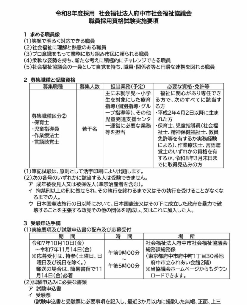 募集職種区分② 保育士・児童指導員・作業療法士・言語聴覚士(子ども発達支援センター)