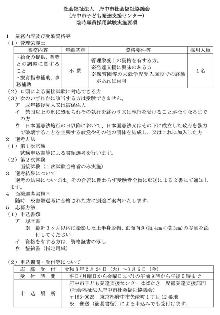 臨時職員(管理栄養士)