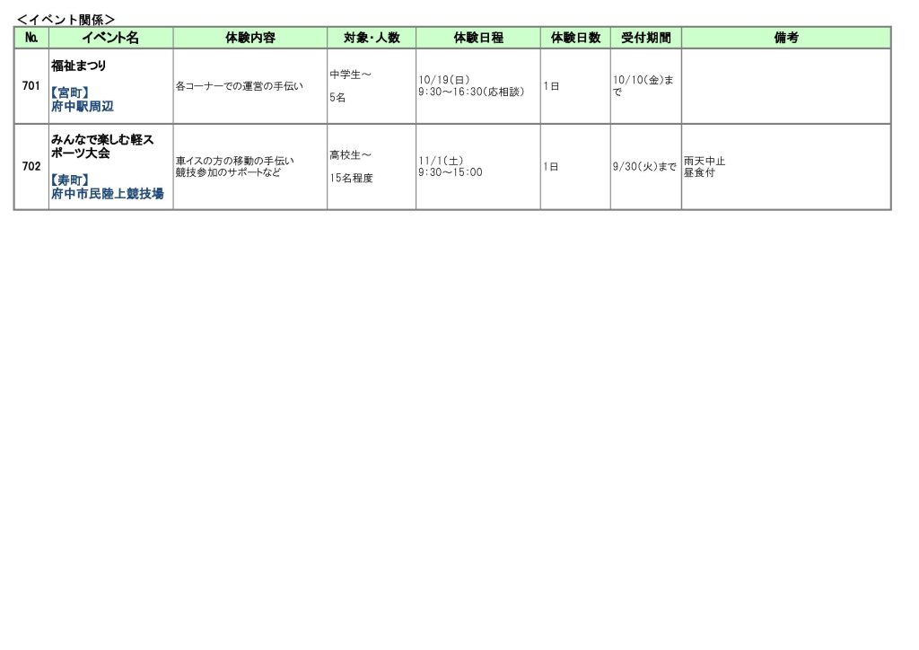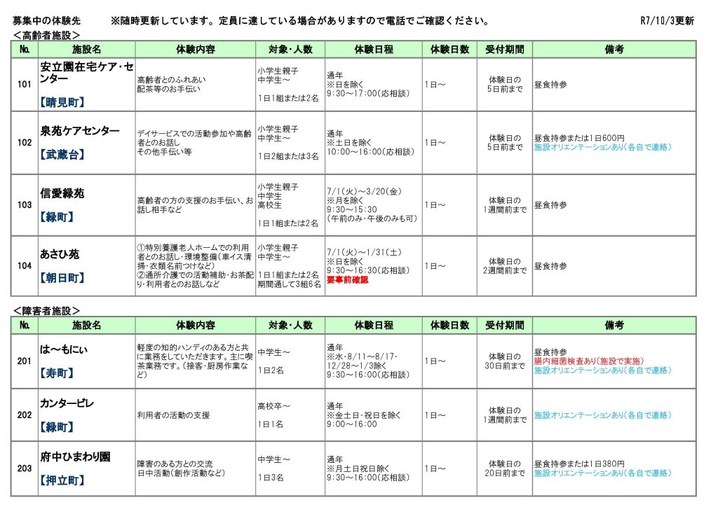 令和7年度もボランティア体験を実施します。